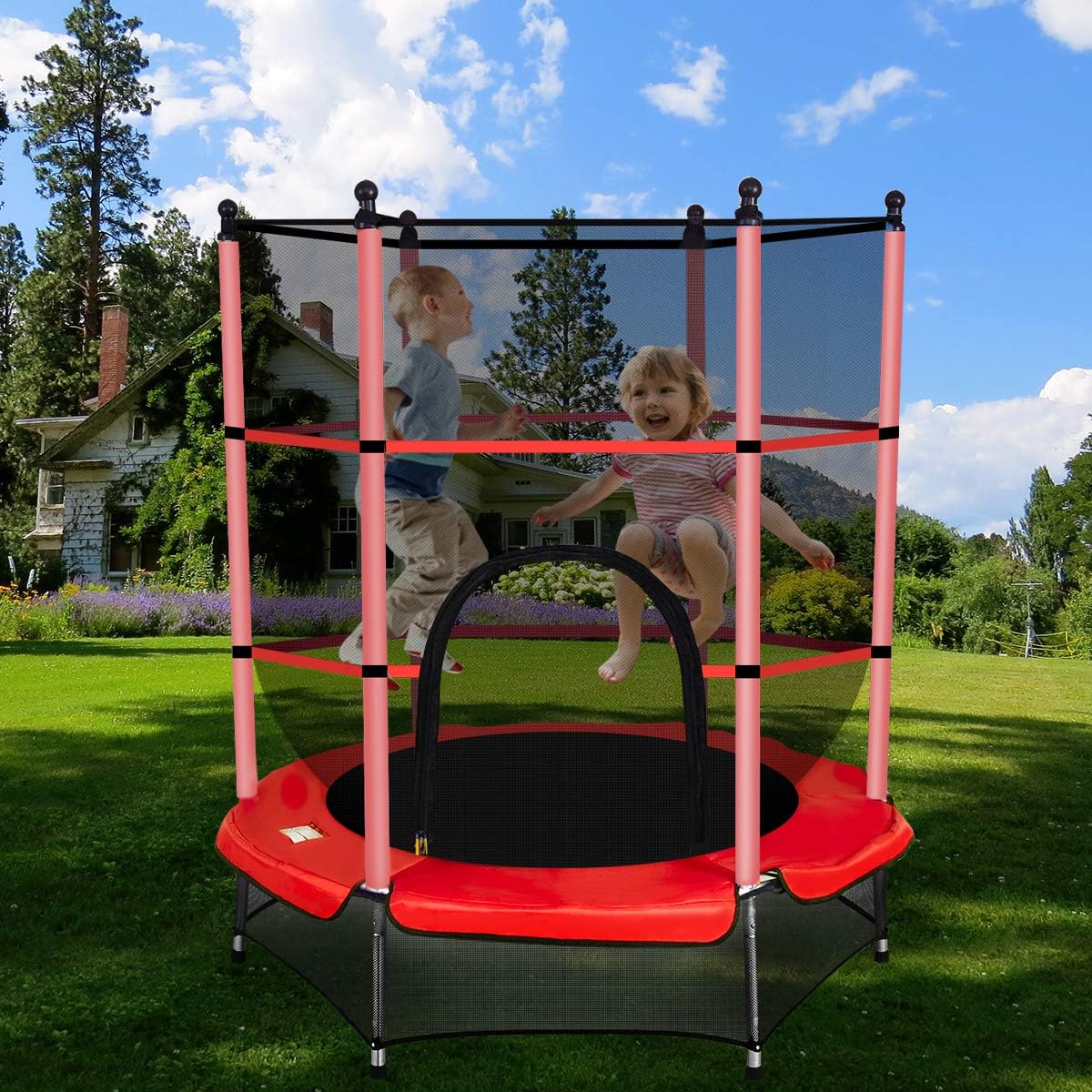 COSTWAY Trampolino da Giardino per Bambini, Trampolino Elastico con Rete di Sicurezza, Set Completo, Esercizio Fitness per Bambini Ragazzi, Ø140 cm: