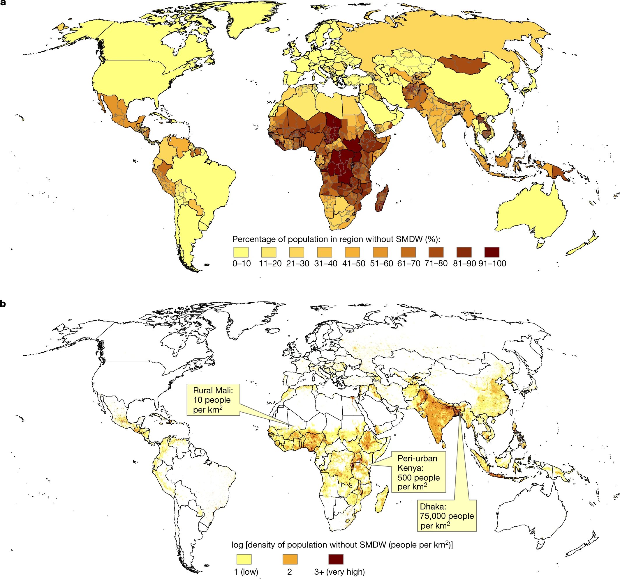 Based on a Google Earth engine , the instrument uses ERA5 data : it is a database containing data from a series of historical climate observations dating back to 1979 . To evaluate the different results of atmospheric water absorption in different regions, AWH-Geo took into account the irradiation of sunlight , relative humidity and average air temperature of each location. Furthermore, the tool took into account the annual variations of these parameters. The team also looked at the global distribution of people without access to safe water, using data from the World Health Organization and UNICEF: